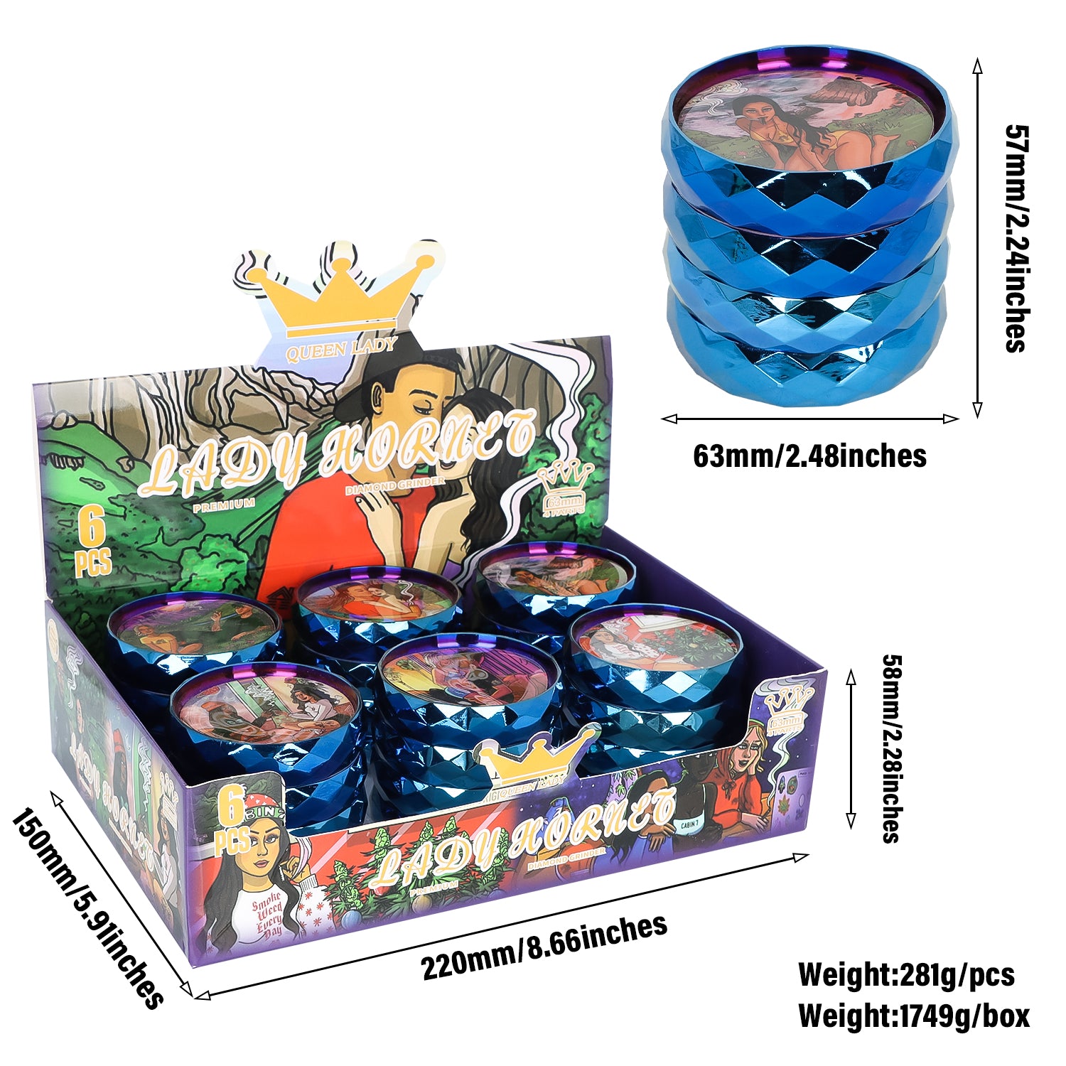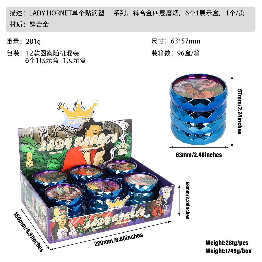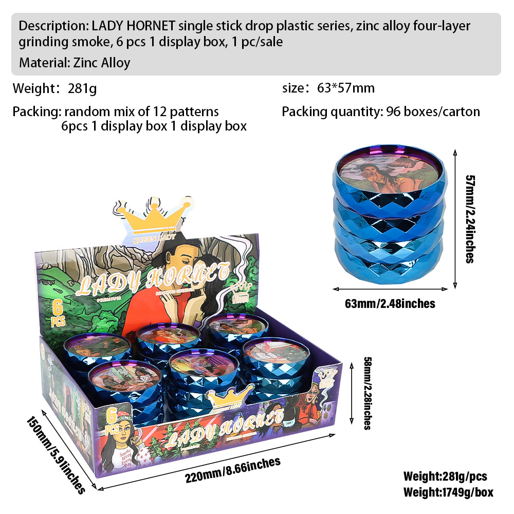 Description]:LADY HORNET 4-layer diamond cut grinder, single drop plastic