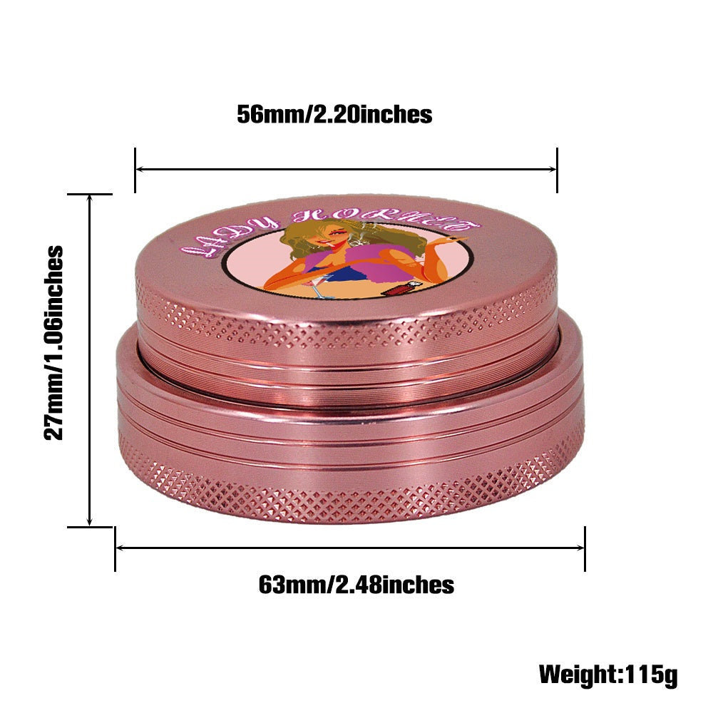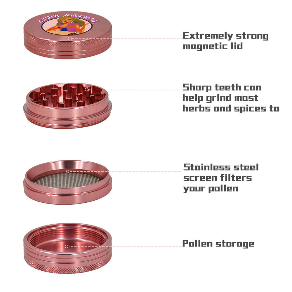 LADY HORNET Aluminum Alloy Herb Grinder, 4 Lay Ø 63 Smoker Grinder, Rose Gold Portable Tobacco Grinder, 12 PCS/ Box