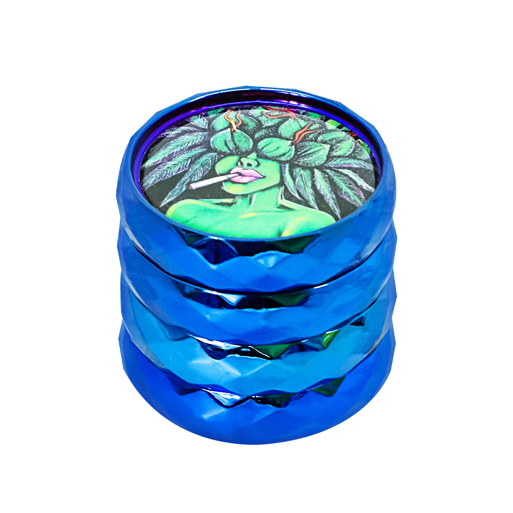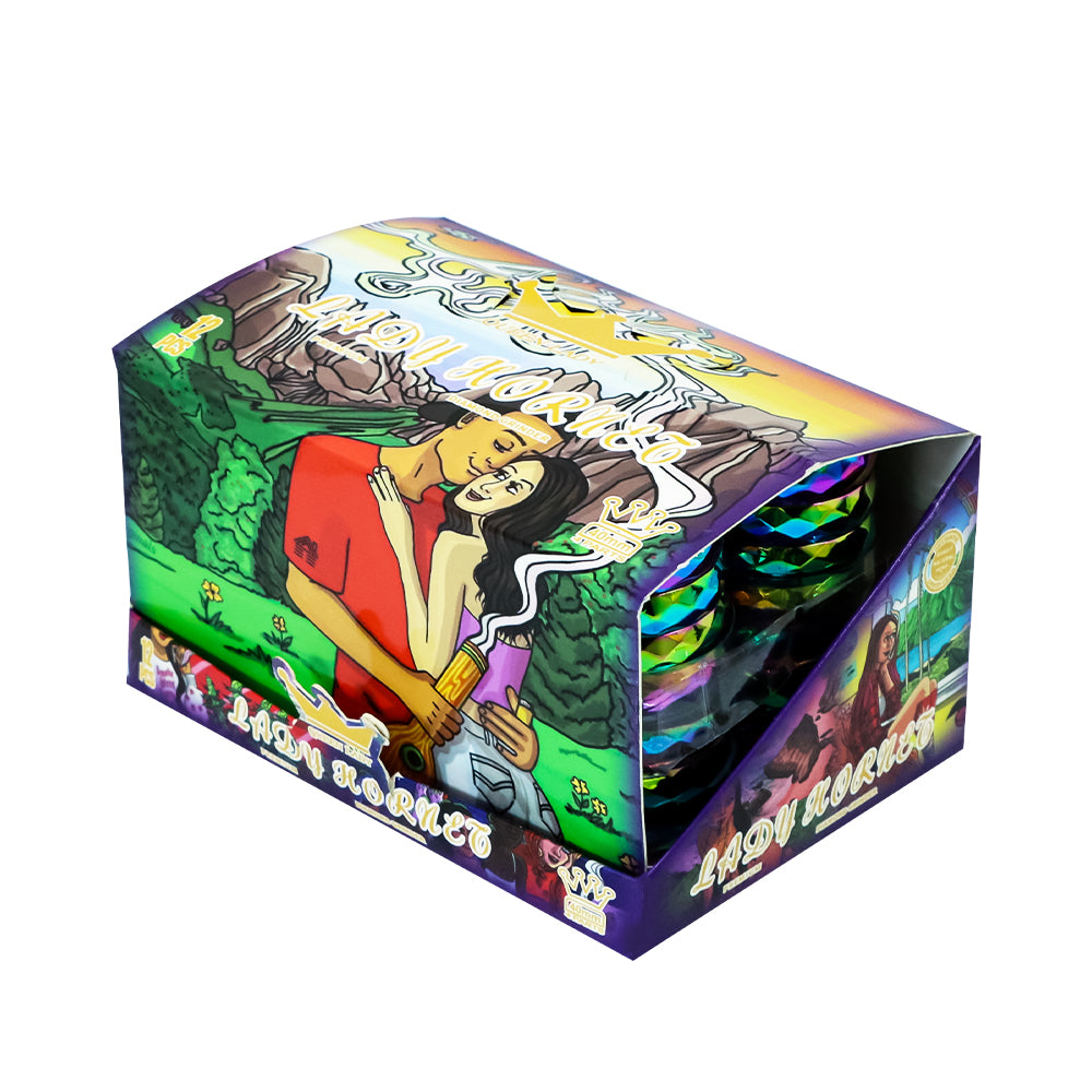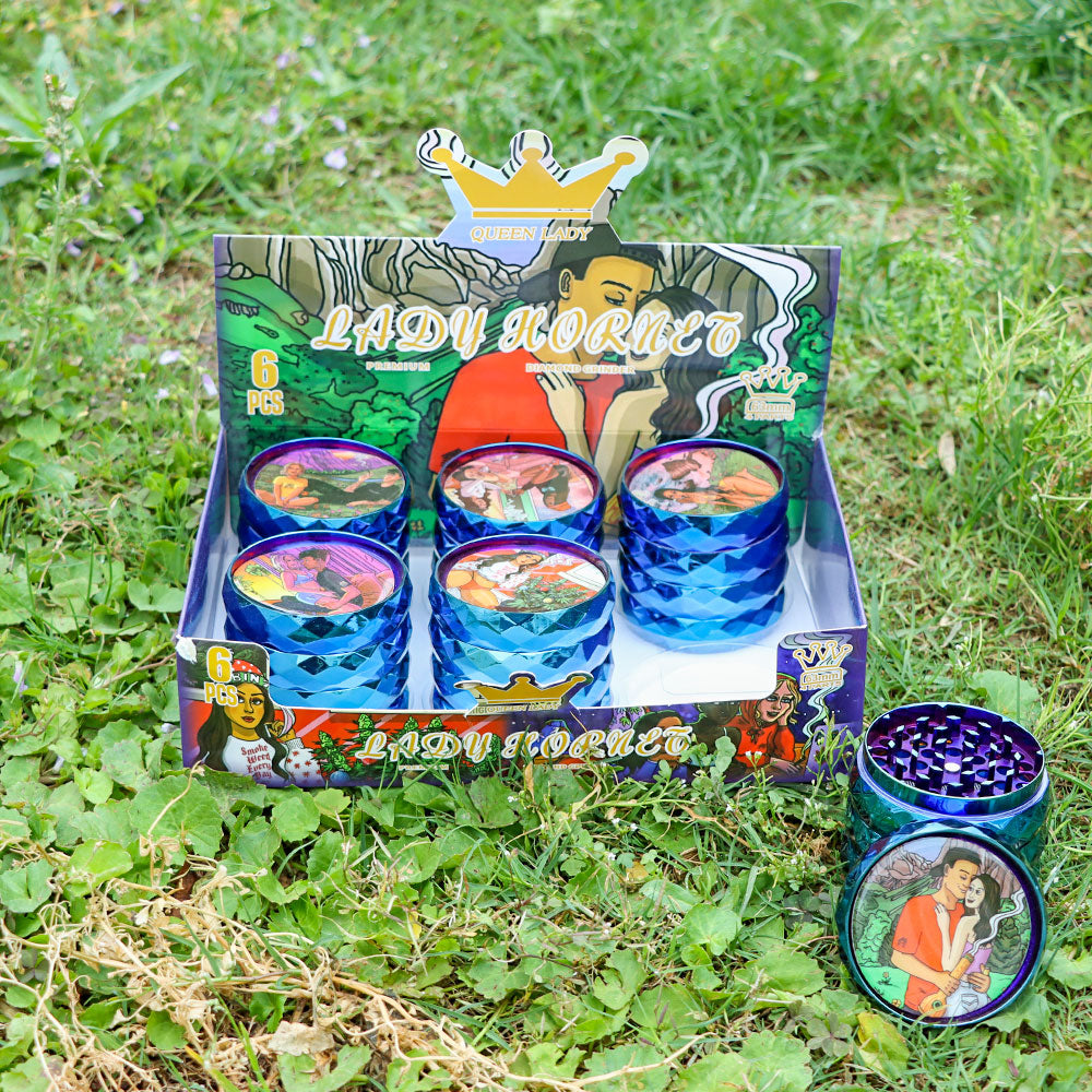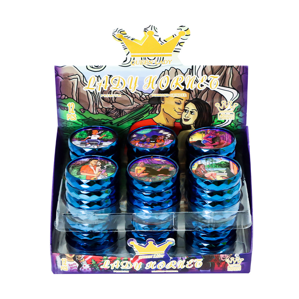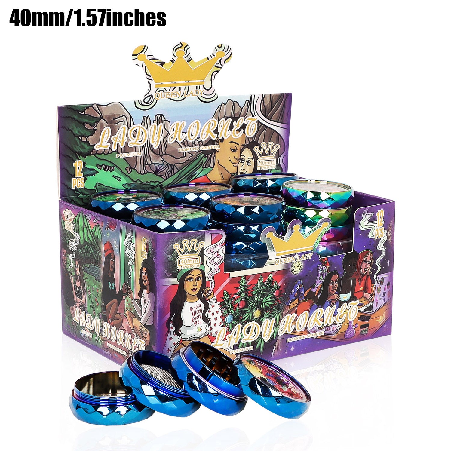LADY HORNET Zinc Alloy Herb Grinder with Glass Lid, 4 Lay Ø 40 Smoker Grinder, Diamond Design Portable Tobacco Grinder, 12 PCS/ Box