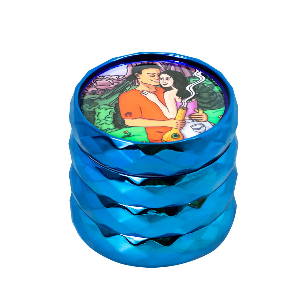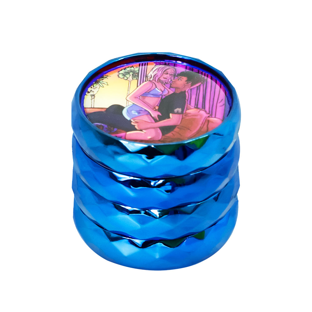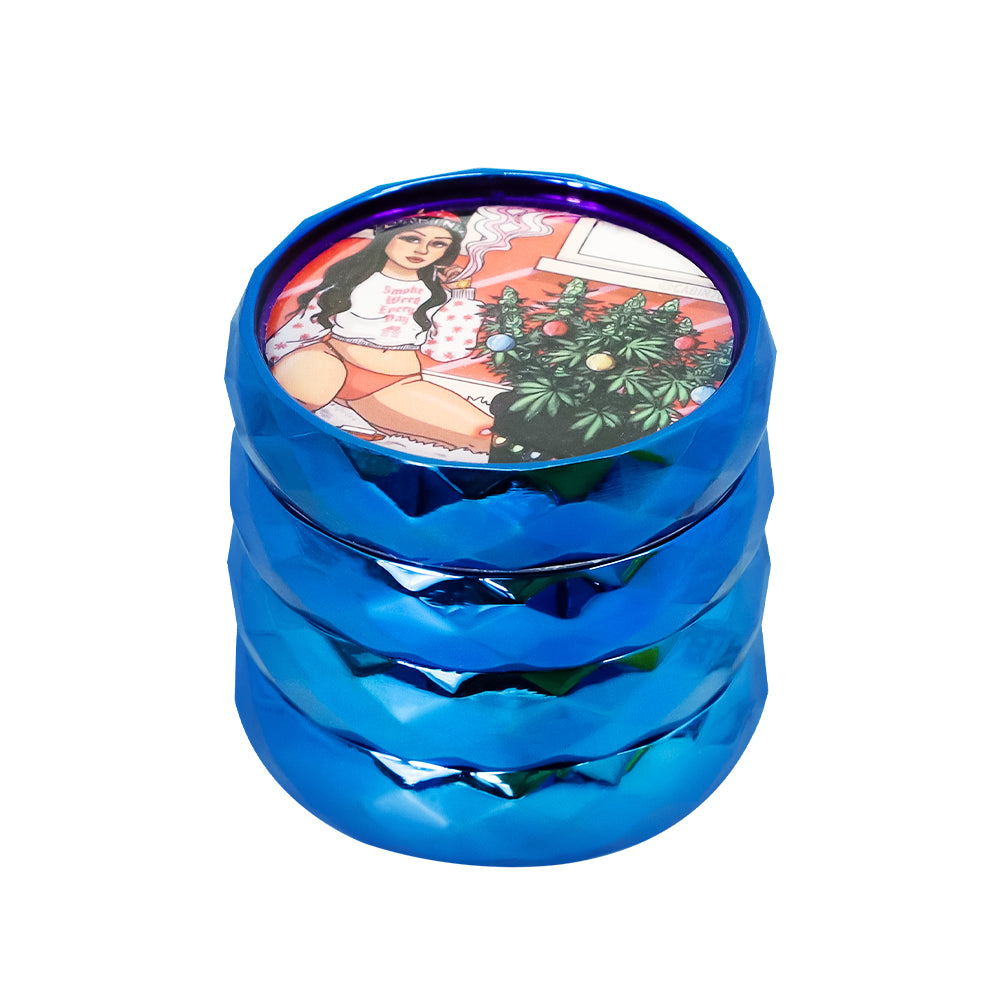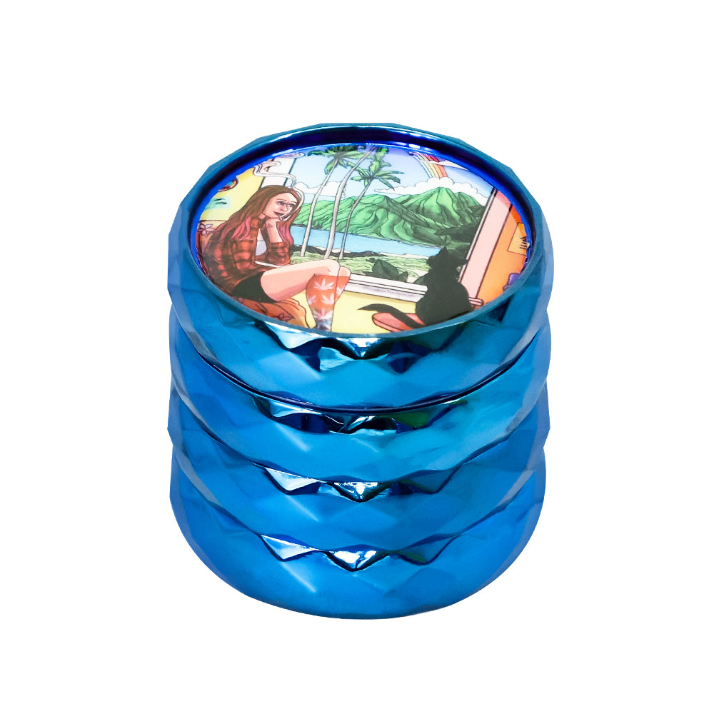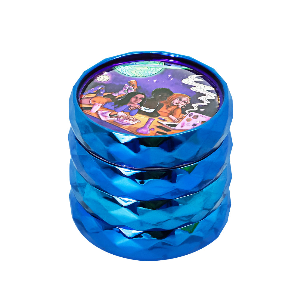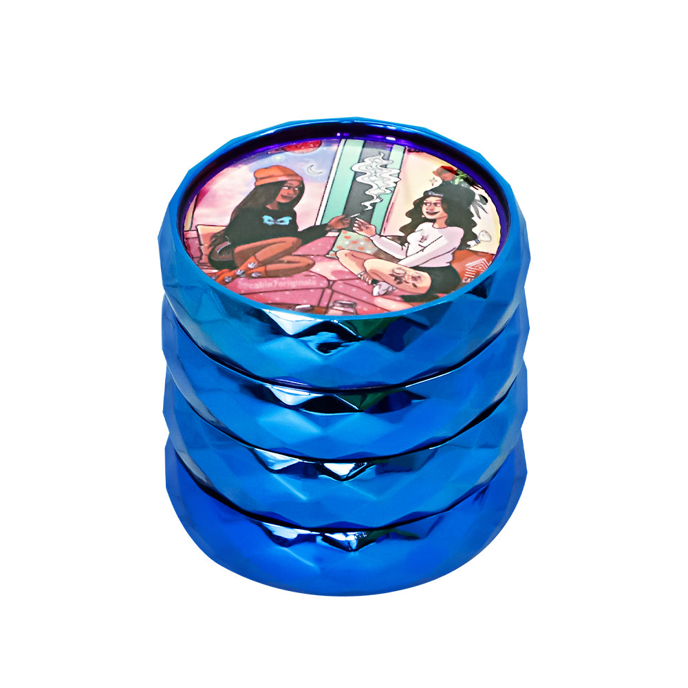 LADY HORNET Zinc Alloy Herb Grinder with Glass Lid, 4 Lay Ø 40 Smoker Grinder, Diamond Design Portable Tobacco Grinder, 12 PCS/ Box