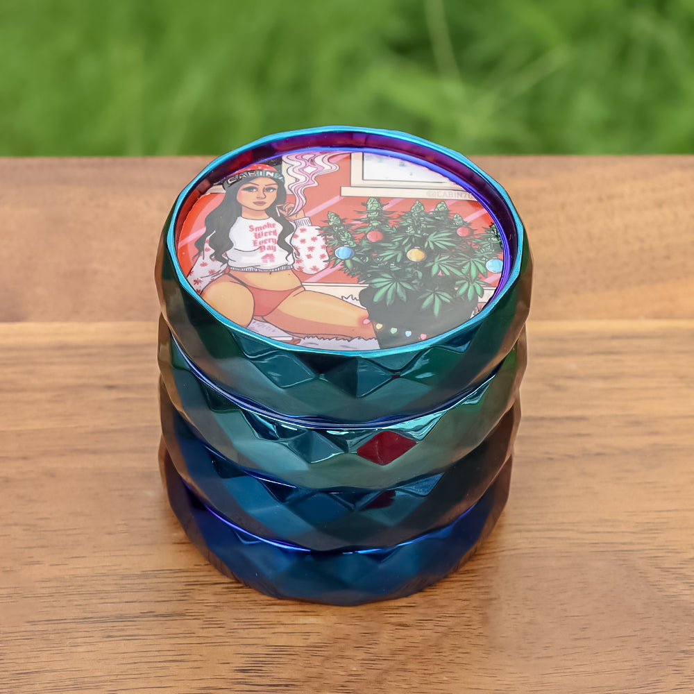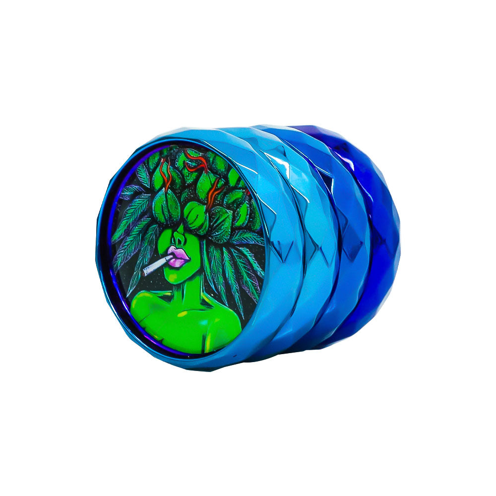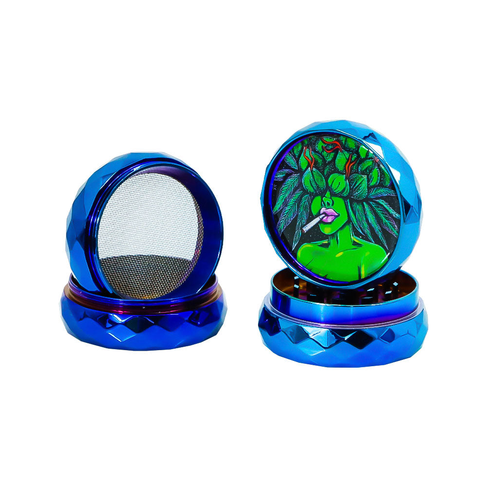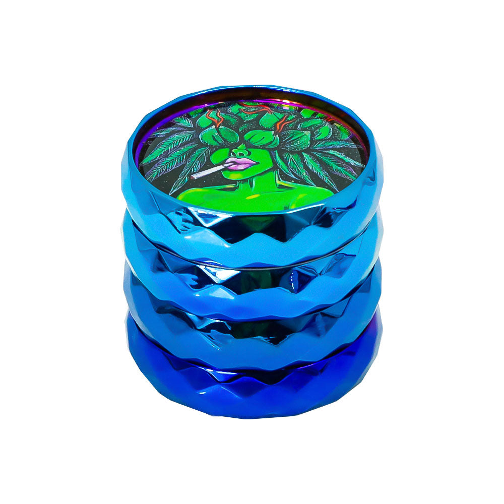 LADY HORNET Zinc Alloy Herb Grinder with Glass Lid, 4 Lay Ø 50 Smoker Grinder, Diamond Design Portable Tobacco Grinder, 12 PCS/ Box