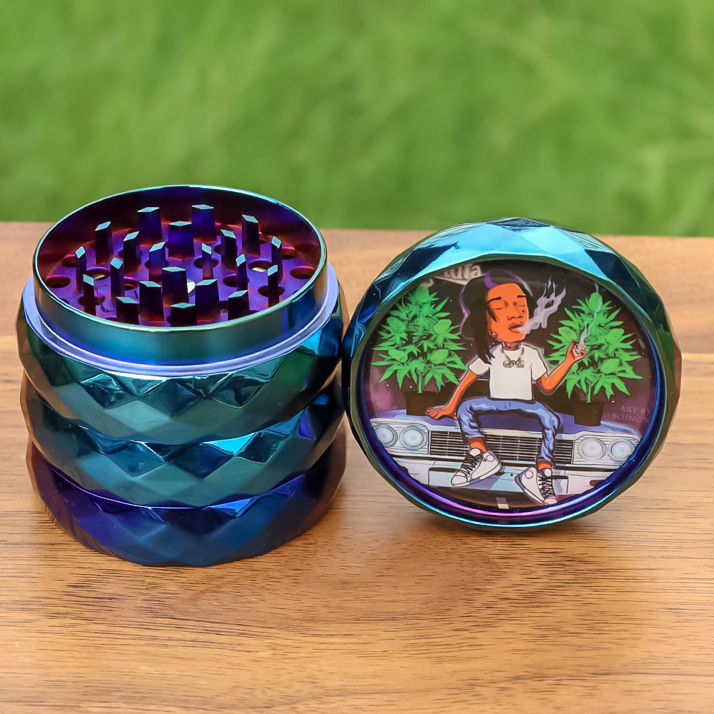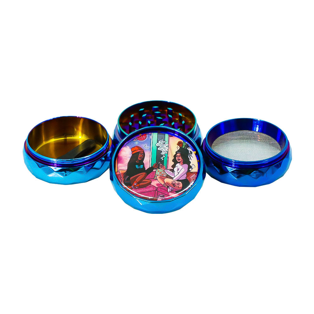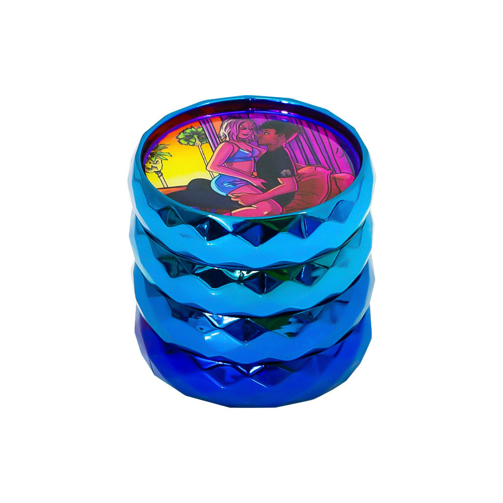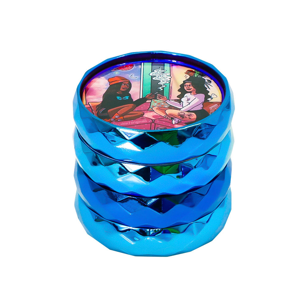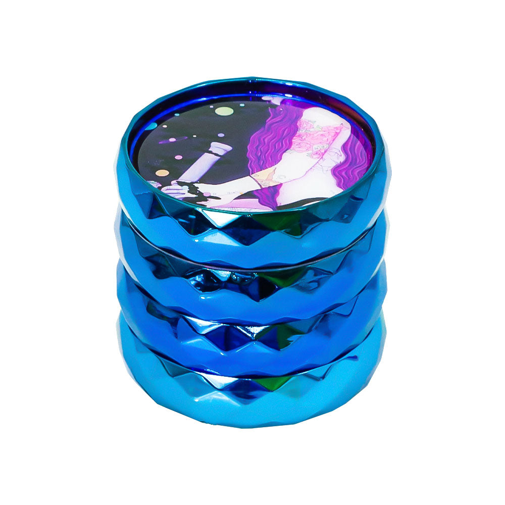 LADY HORNET Zinc Alloy Herb Grinder with Glass Lid, 4 Lay Ø 50 Smoker Grinder, Diamond Design Portable Tobacco Grinder, 12 PCS/ Box