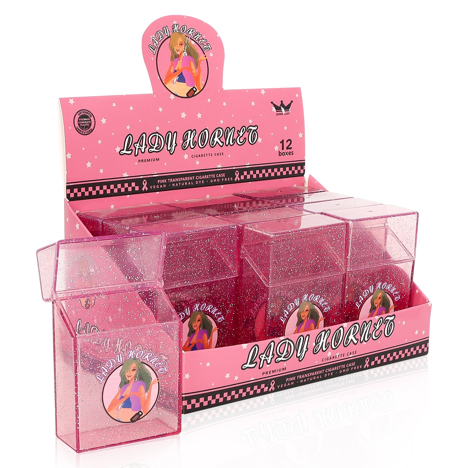 LADY HORNET Transparent Pink Plastic Cigarette Case, 92 x 60 x27 mm Cigarette Box, 12 PCS / Box