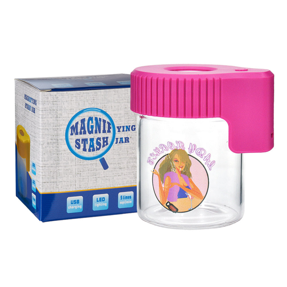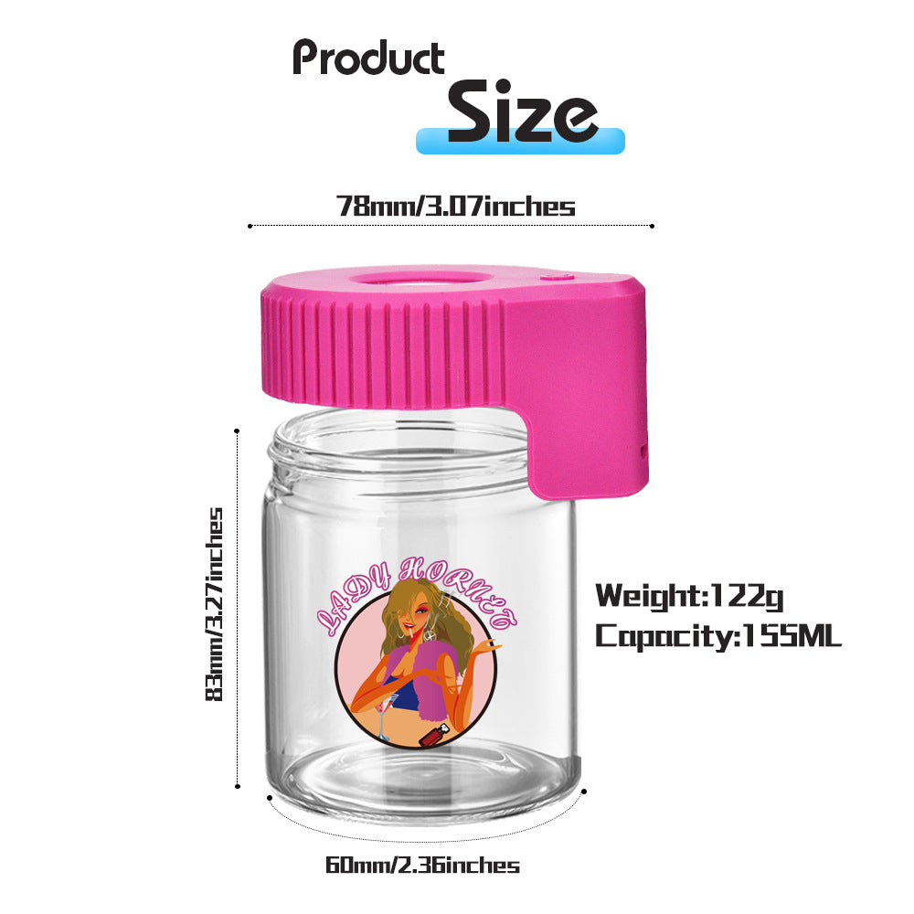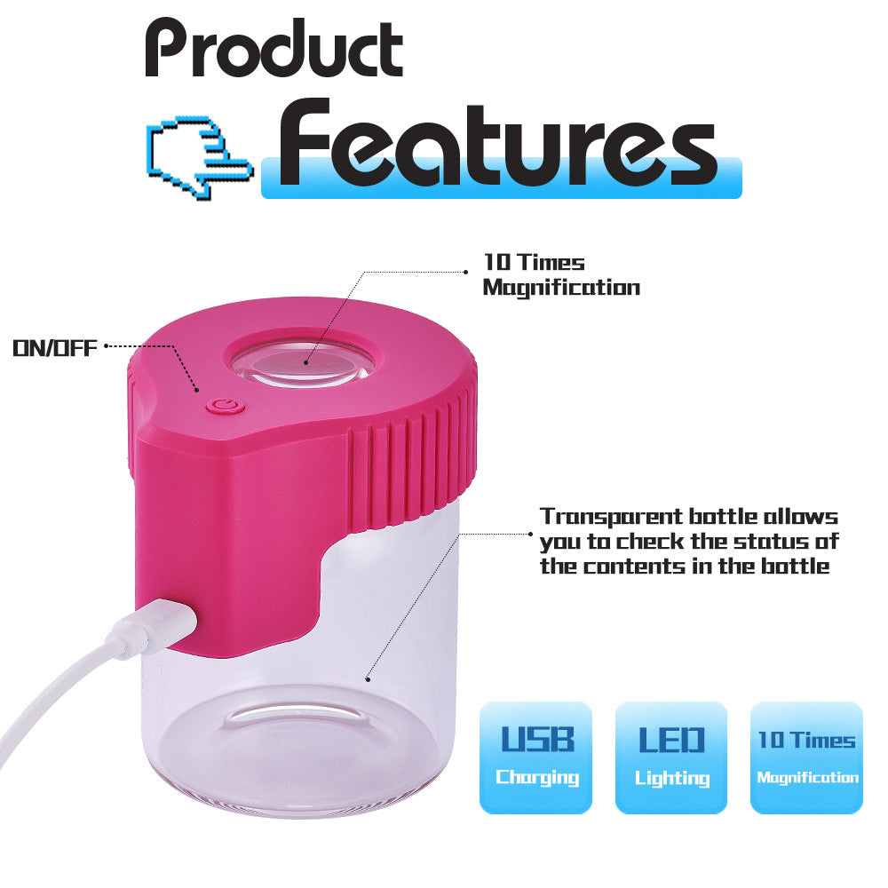 LADY HORNET Light-Up Led Storage Jar, Air Tight & Magnifying View Jar, Pink Color Jar Lid, Rechargeable Glass Jar Container 155 ml