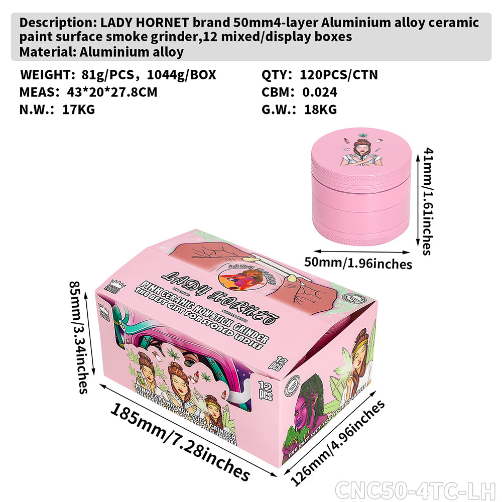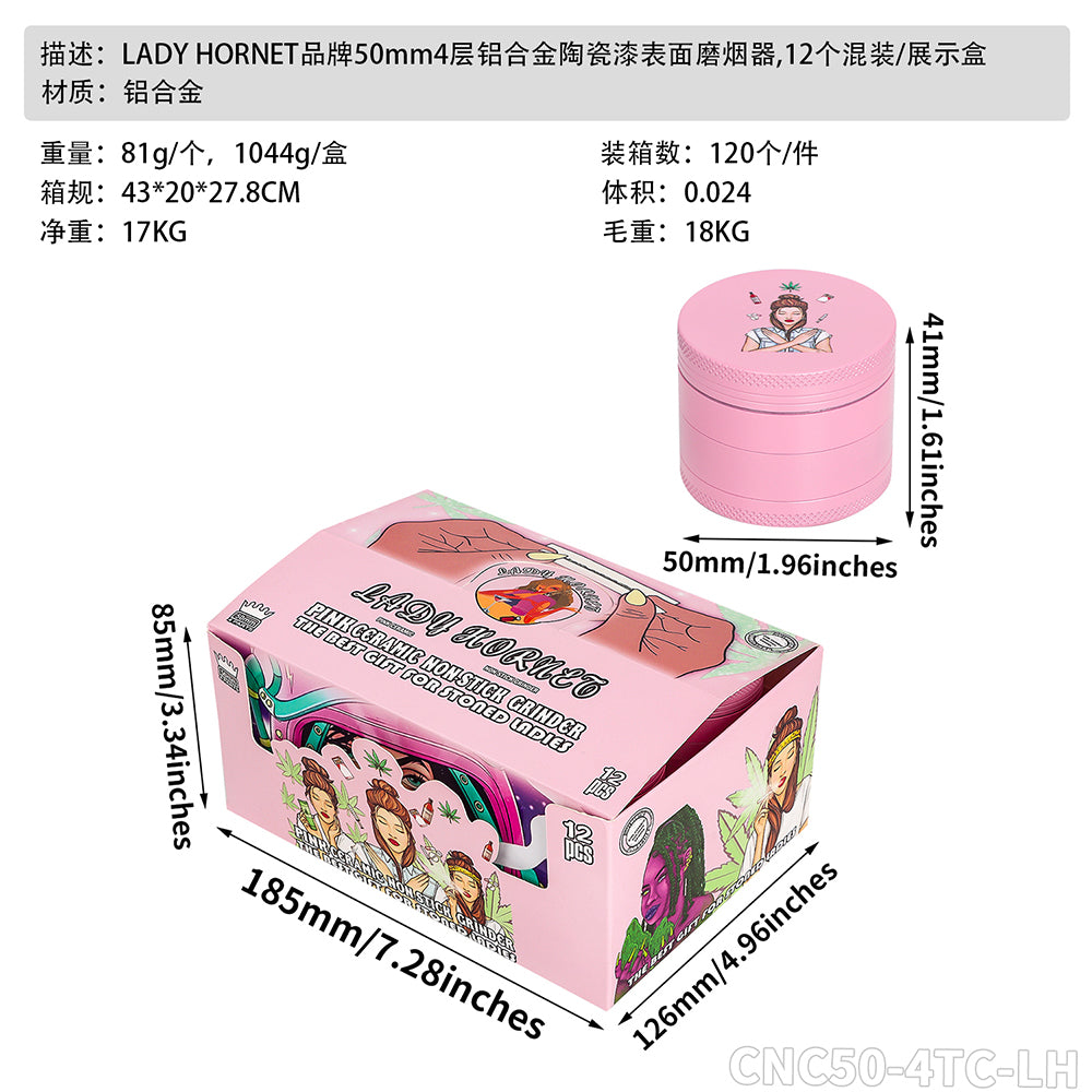 [Description] : LADY HORNET brand 50mm four-layer ceramic smoke grinder