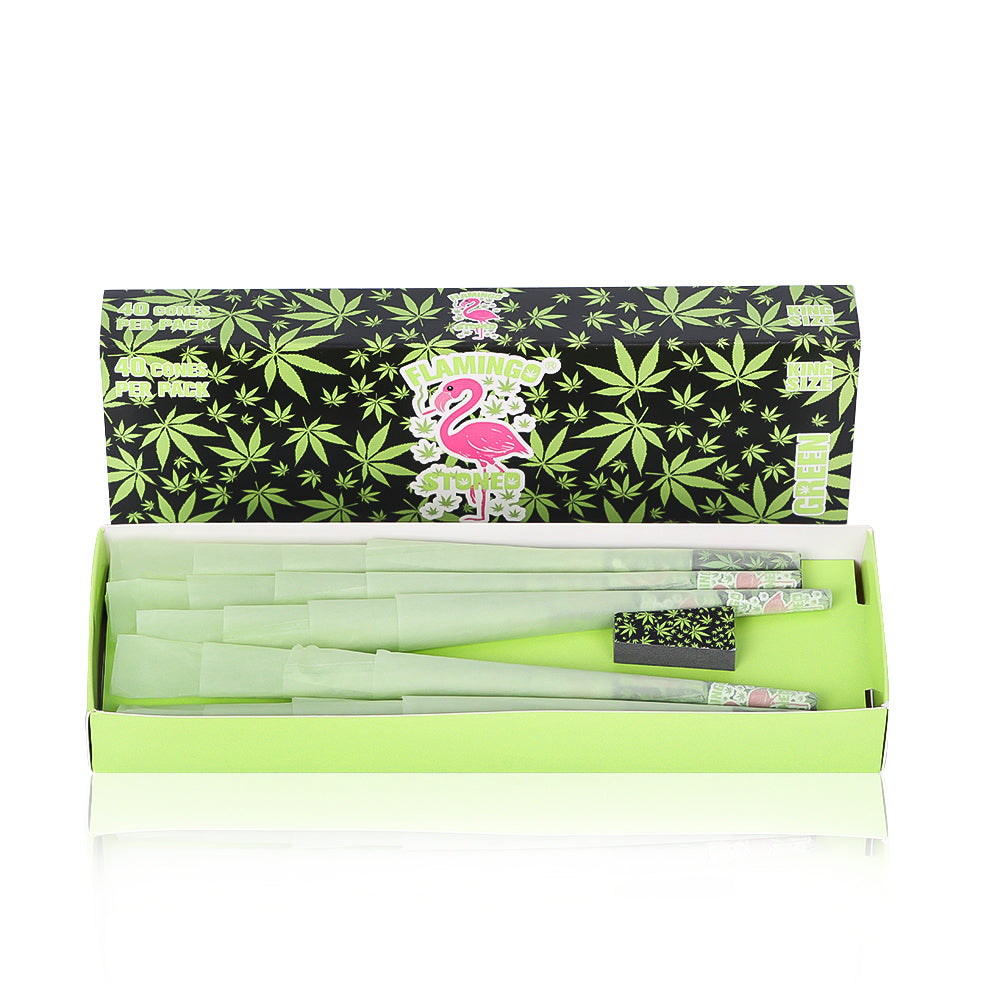 [Description] : STONED FLAMINGO KINGSIZE SIZE GREEN HEMP CONES
