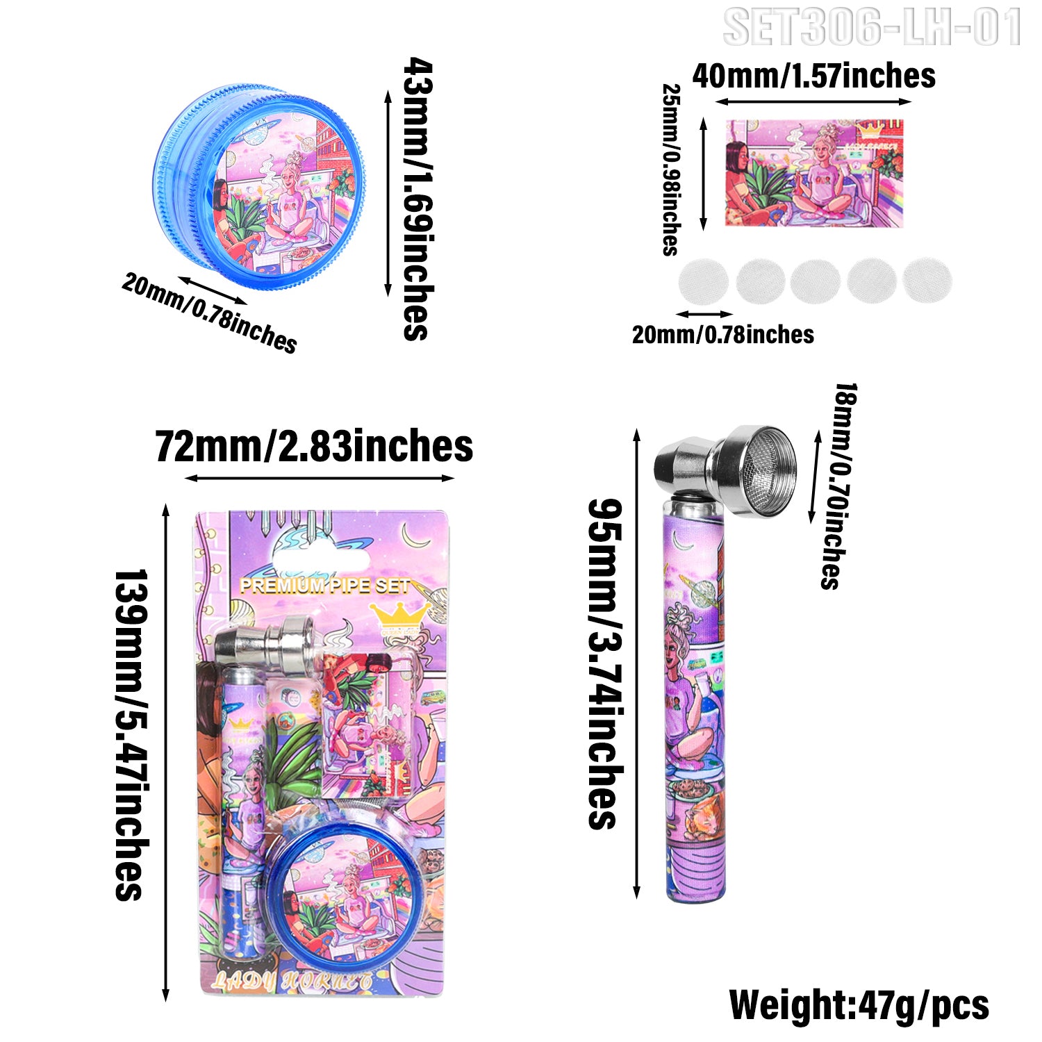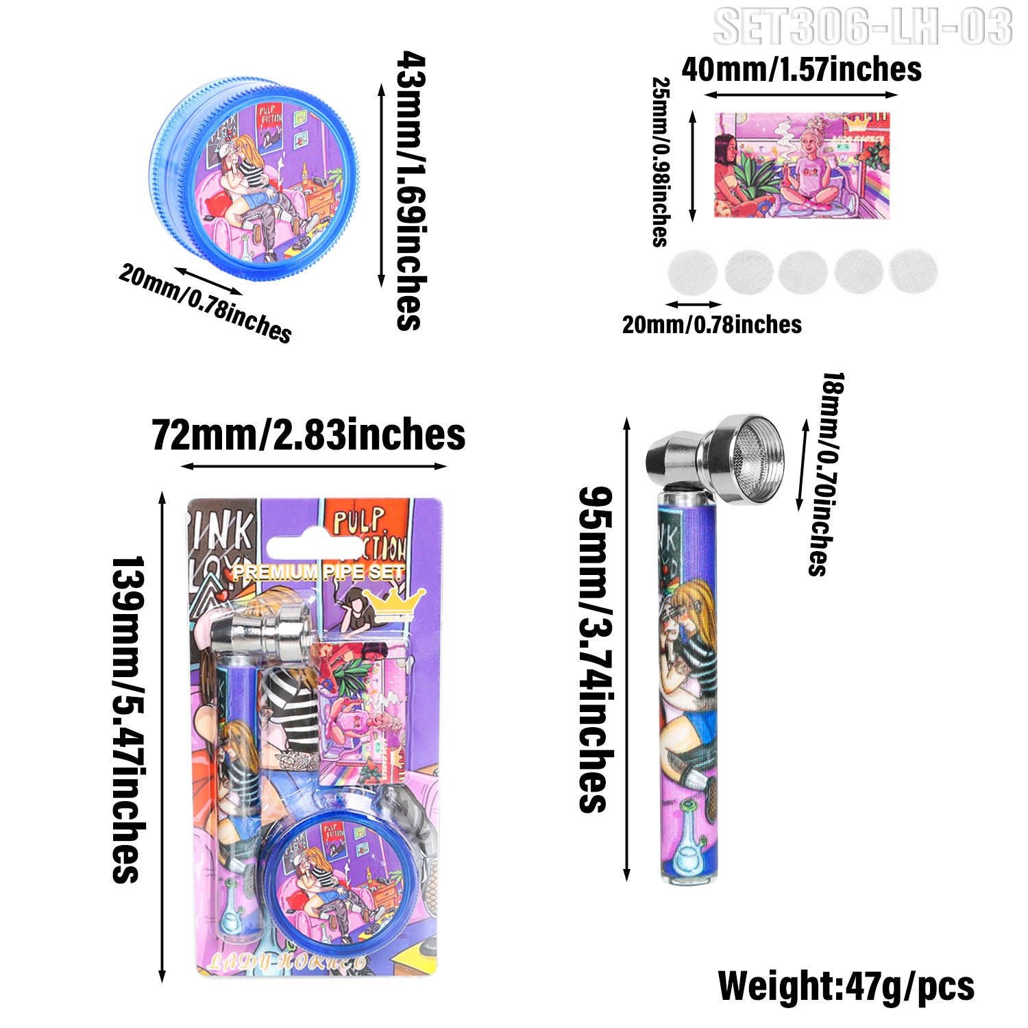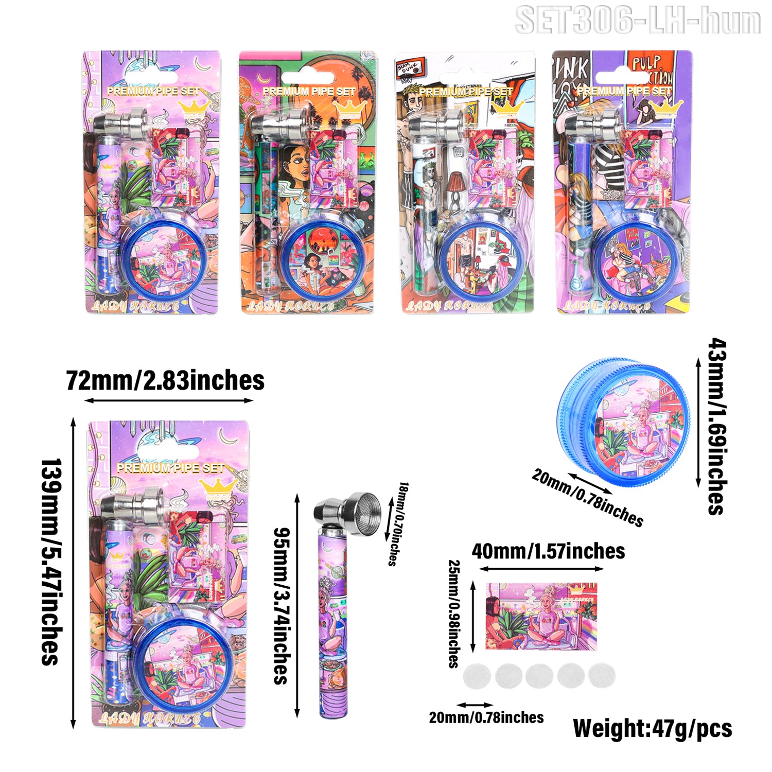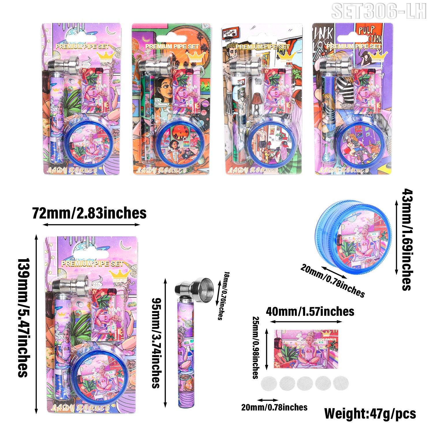 Hot Selling Complete Set Of Smoking Accessories Made Of Metal Including Pipe Grinder Cigarette Rollers Cigarette Paper Set