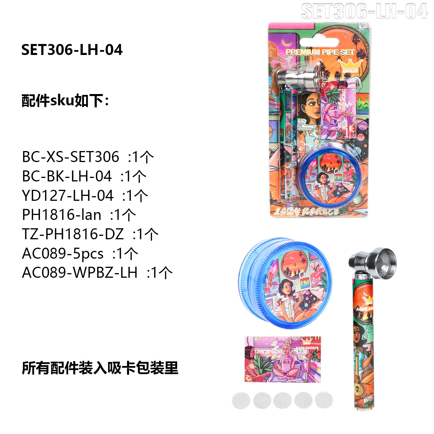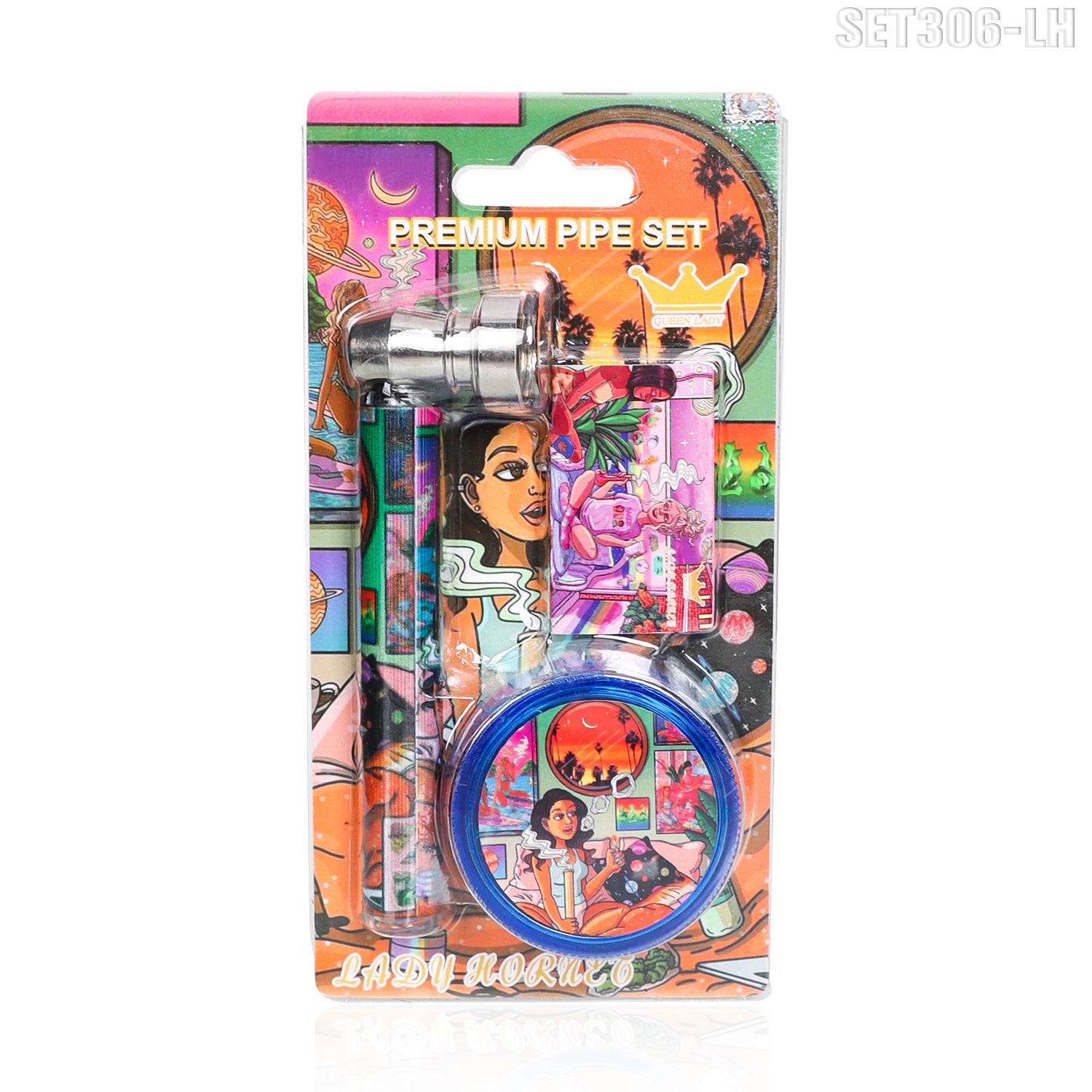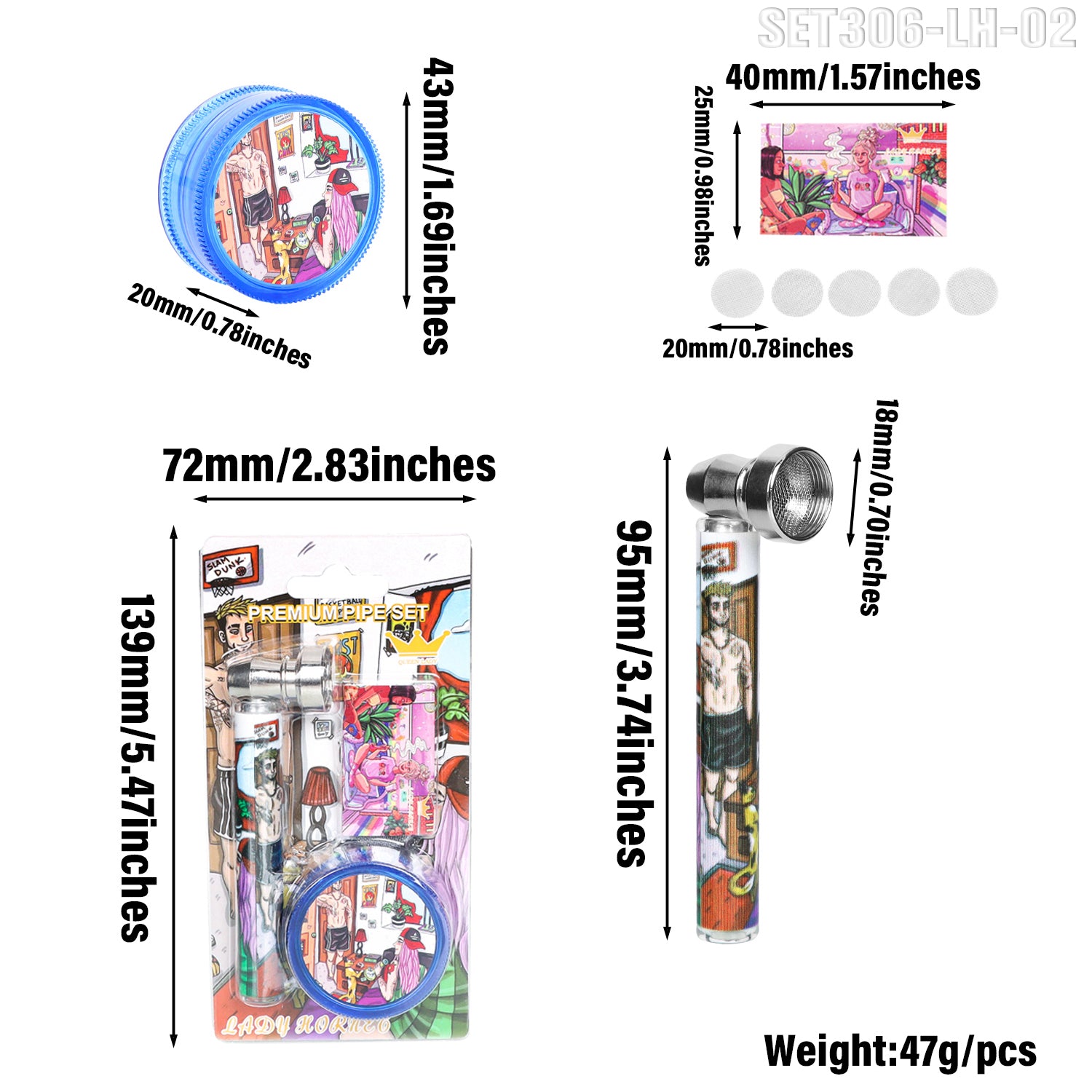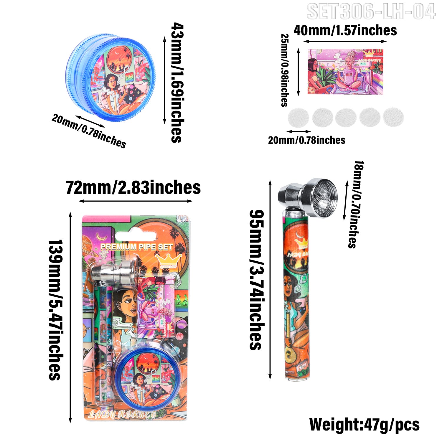 Hot Selling Complete Set Of Smoking Accessories Made Of Metal Including Pipe Grinder Cigarette Rollers Cigarette Paper Set