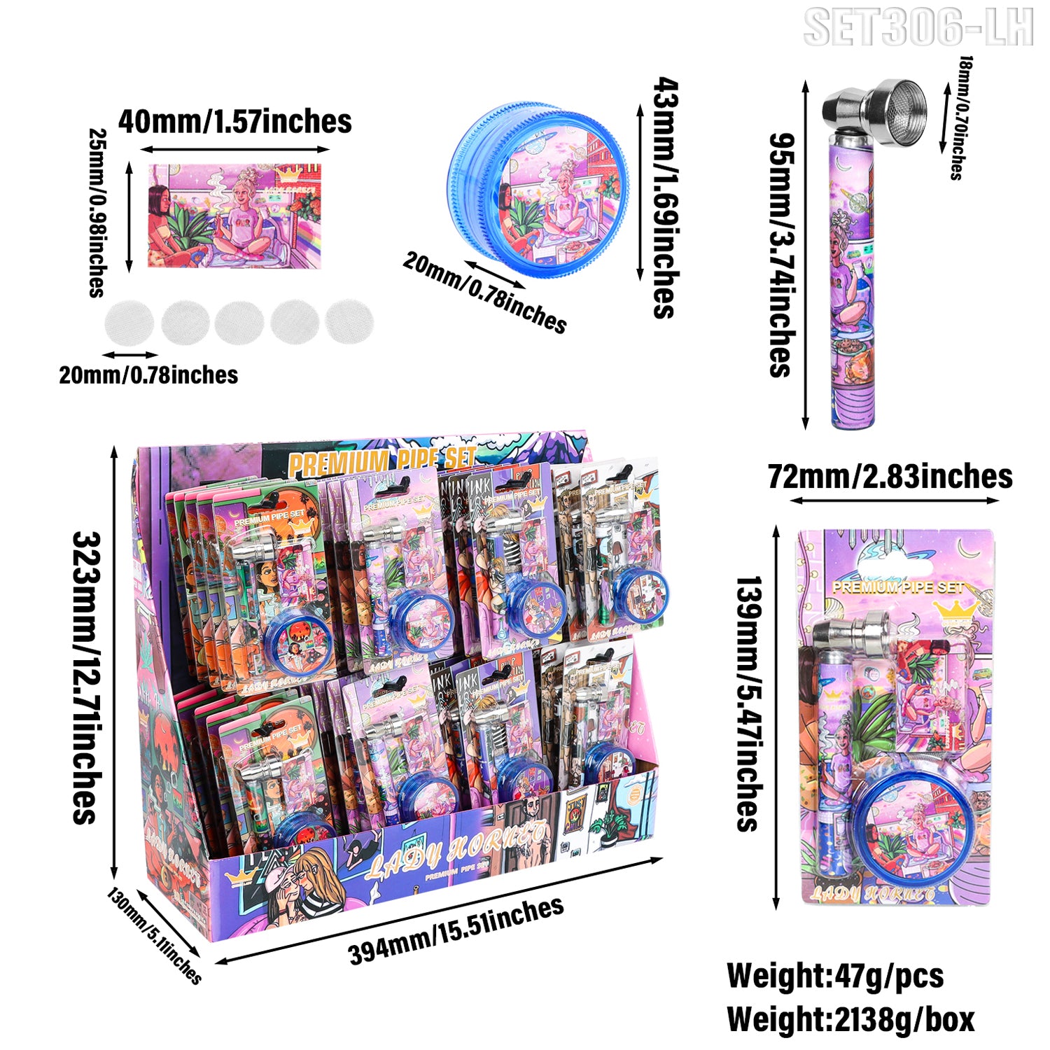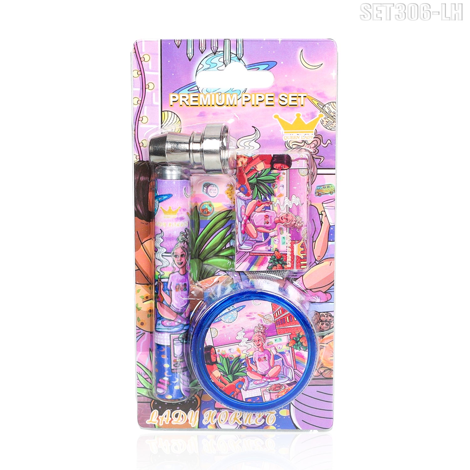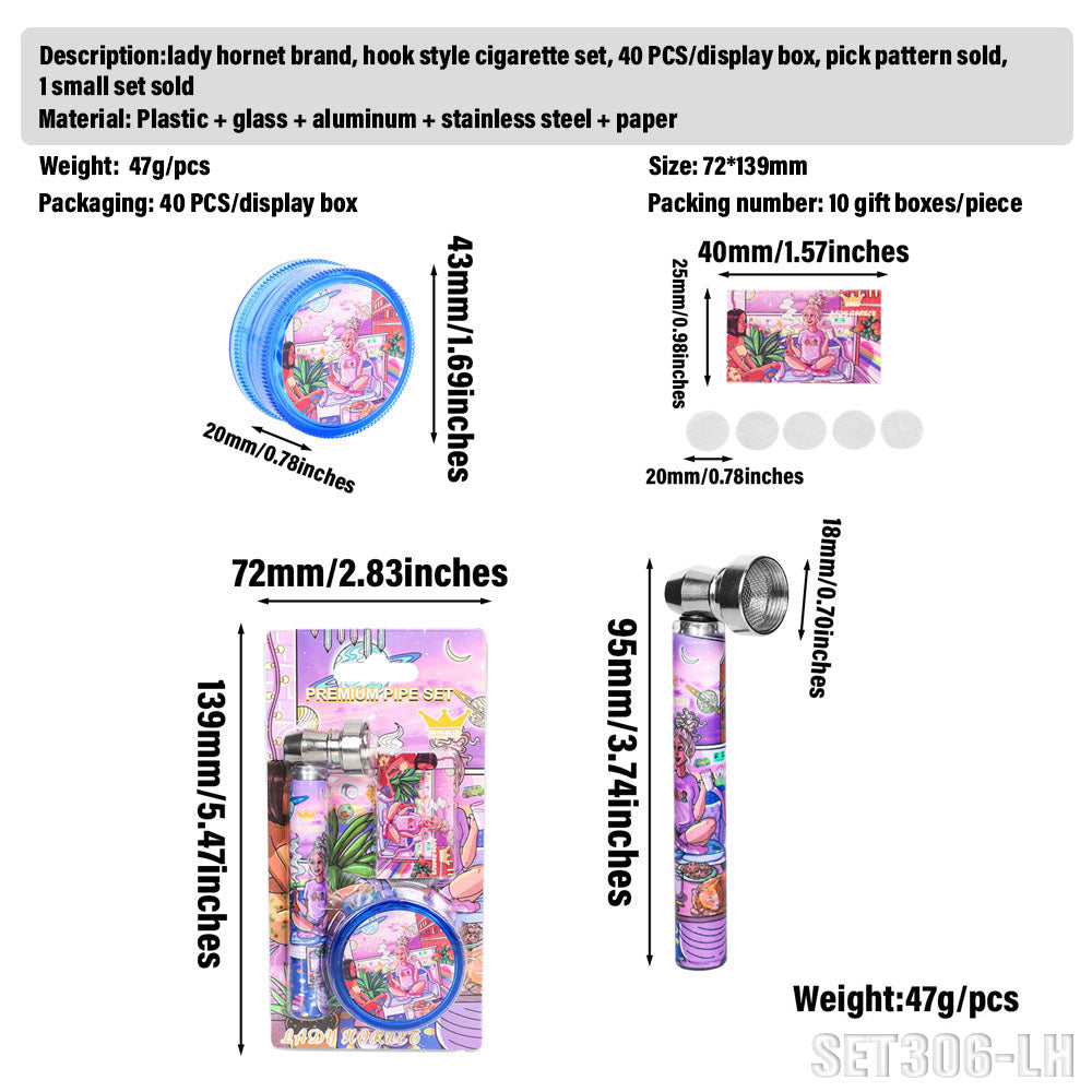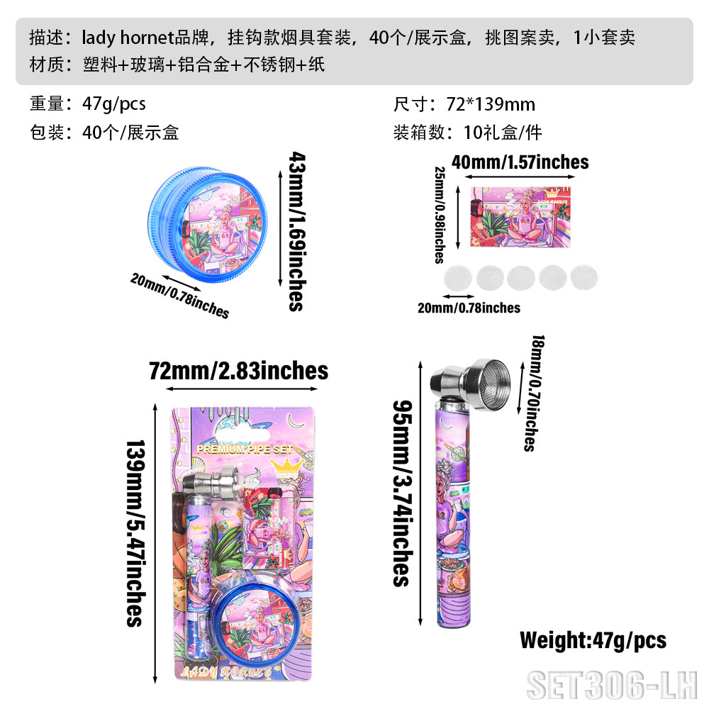 [Description] : LADY HORNET Hook style Smoking Set, metal pipe, plastic smoke grinder, +1 card stainless steel mesh, 40 PCS/display box