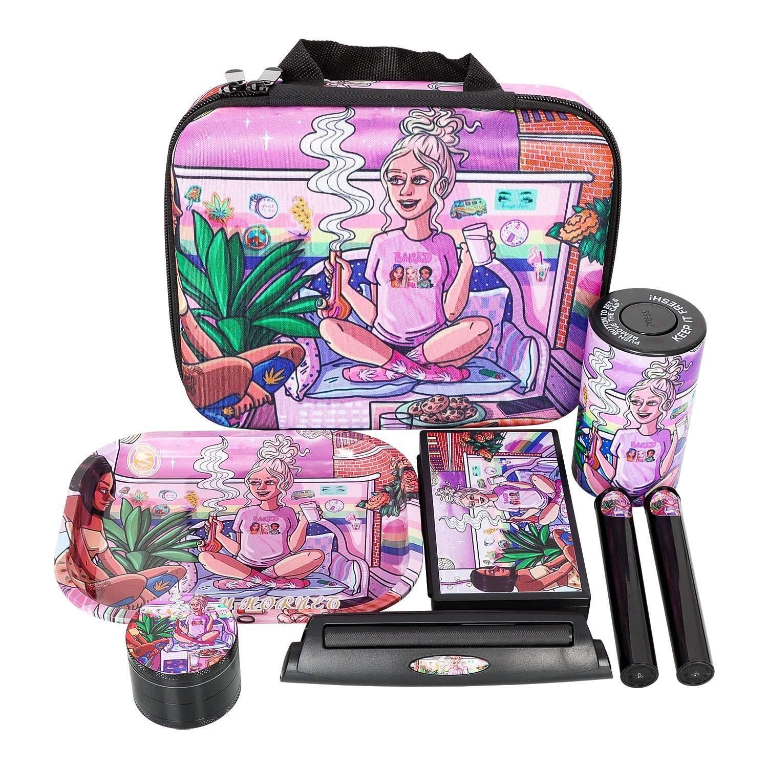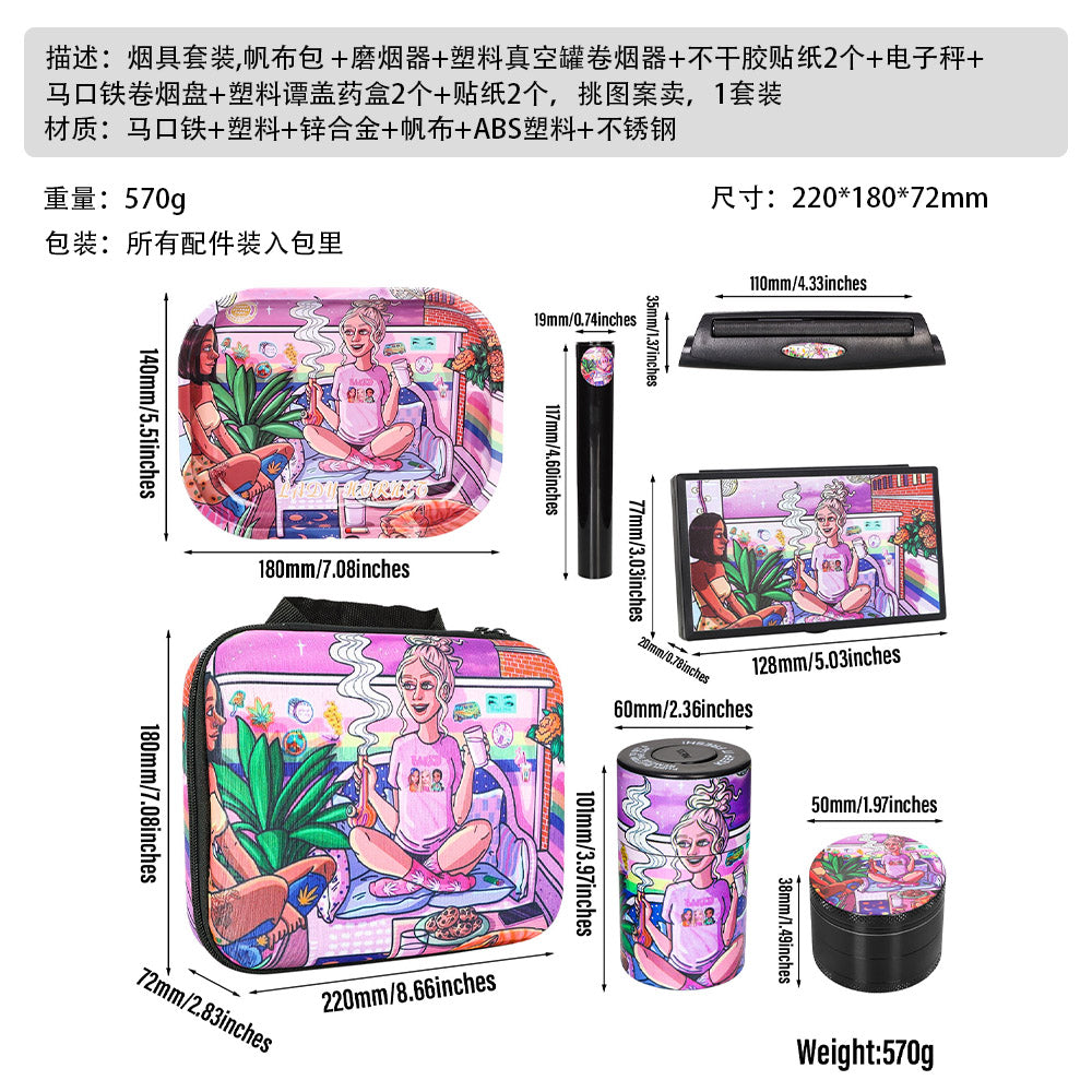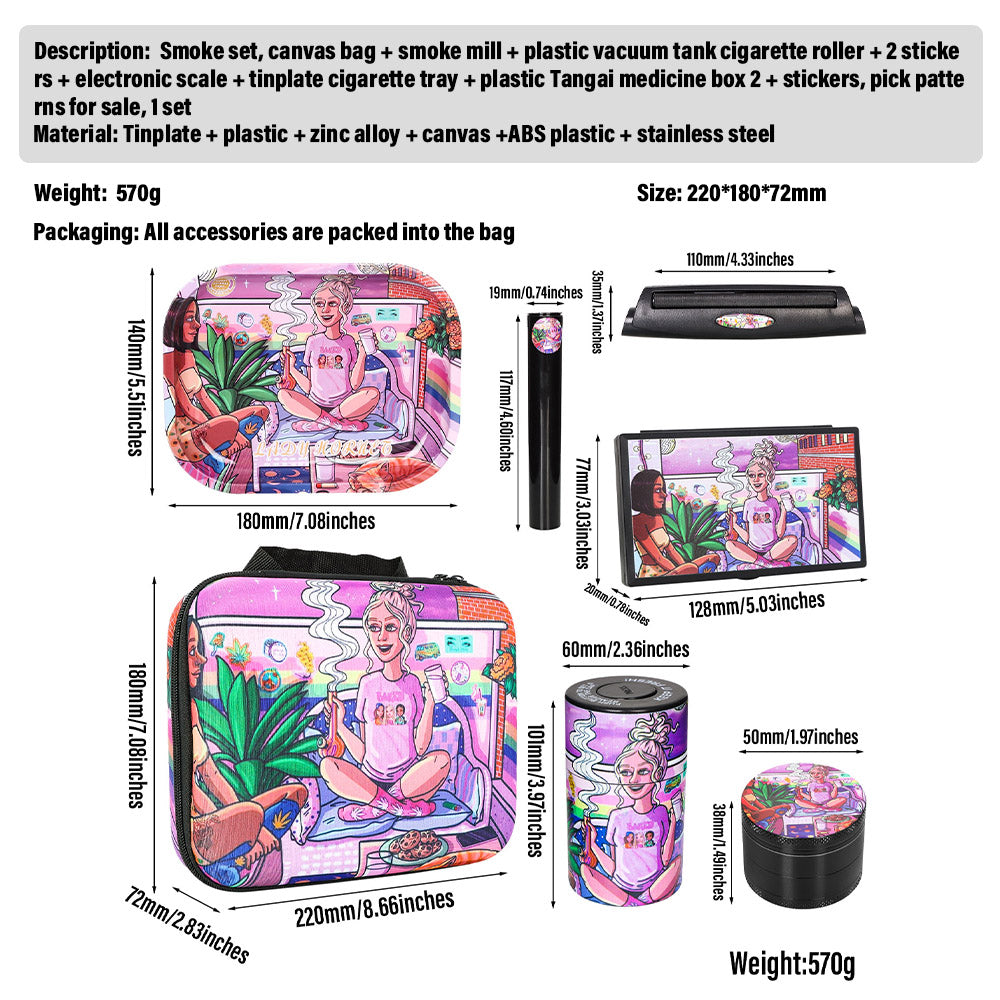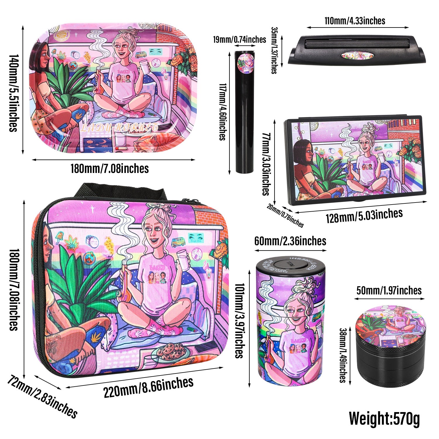 [Description] : LADY HORNET series Smoke set storage box+rolling machine+rolling tray+joint tube+metal grinder+Electronic scale