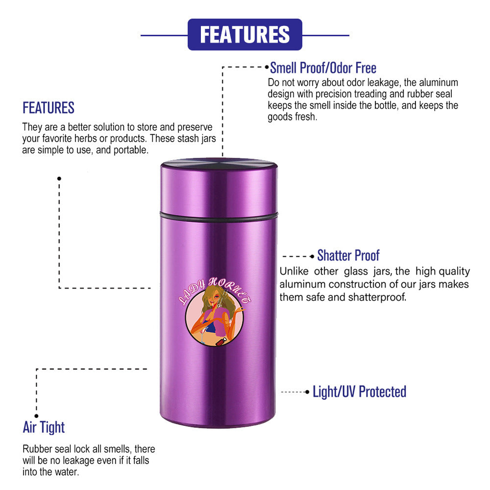 LADY HORNET Aluminum Airtight Stash Jar, Purple Storage Tank, Ø 34 x 74 mm size Storage Container