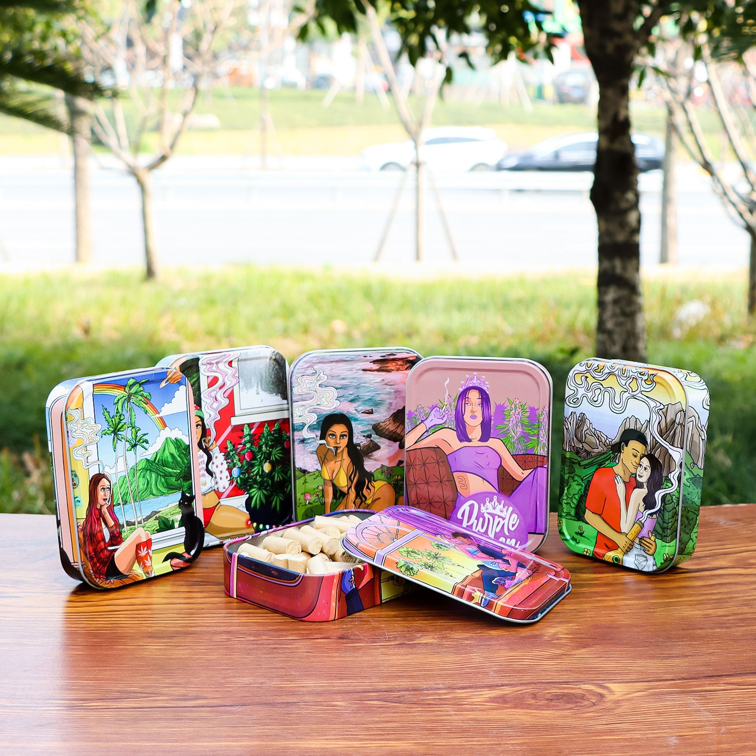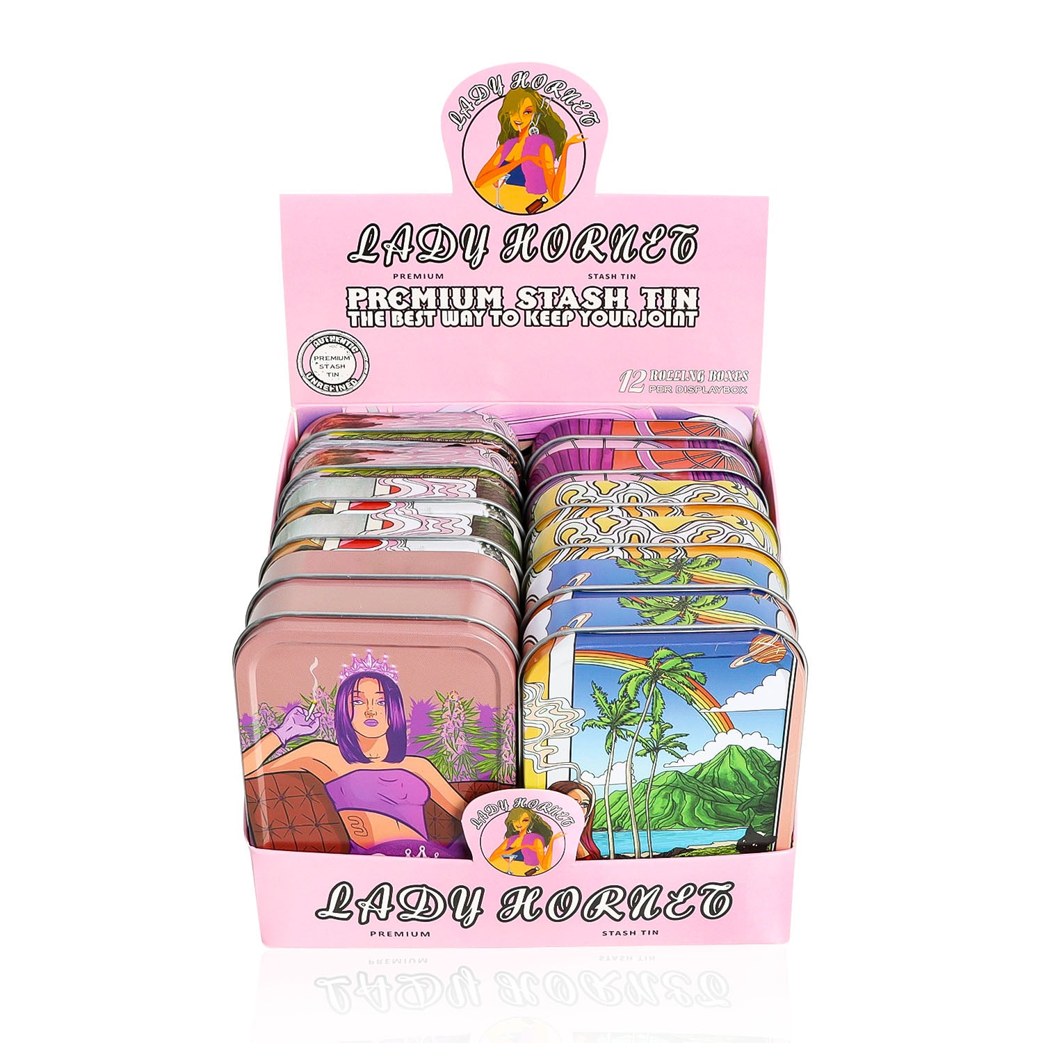 LADY HORNET Smell Proof Metal Tin, 112 x 83 x 25 mm Storage Case, Colorful Storage Box, 12 PCS / Box